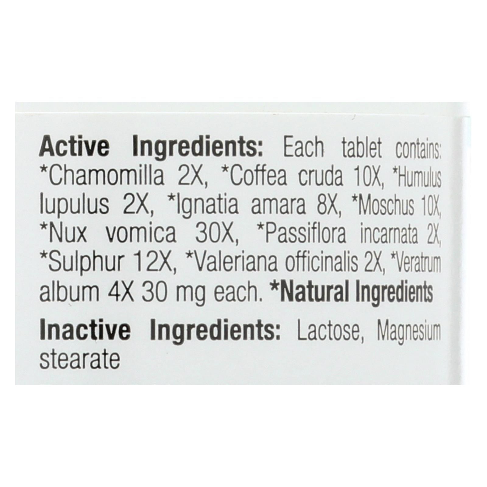Bhi calming tablets are a homeopathic treatment for nervous tension, irritability and sleeplessness. The tablets in each 100-count bottle provide temporary relief for minor nervous tension and occasional sleeplessness for adults and children over the age of 12. The tablets are dissolvable and should not be swallowed whole.