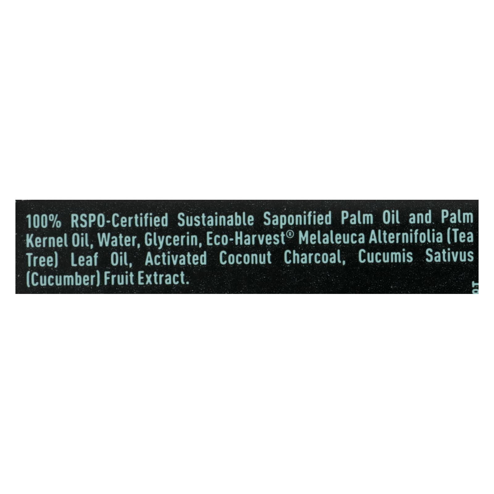 ingredients : 100% rspo-certified sustainable saponified palm oil and palm kernel oil;water;glycerin;eco-harvest® melaleuca alternifolia;tea tree;leaf oil;activated coconut charcoal;cucumis sativus;cucumber;fruit extract